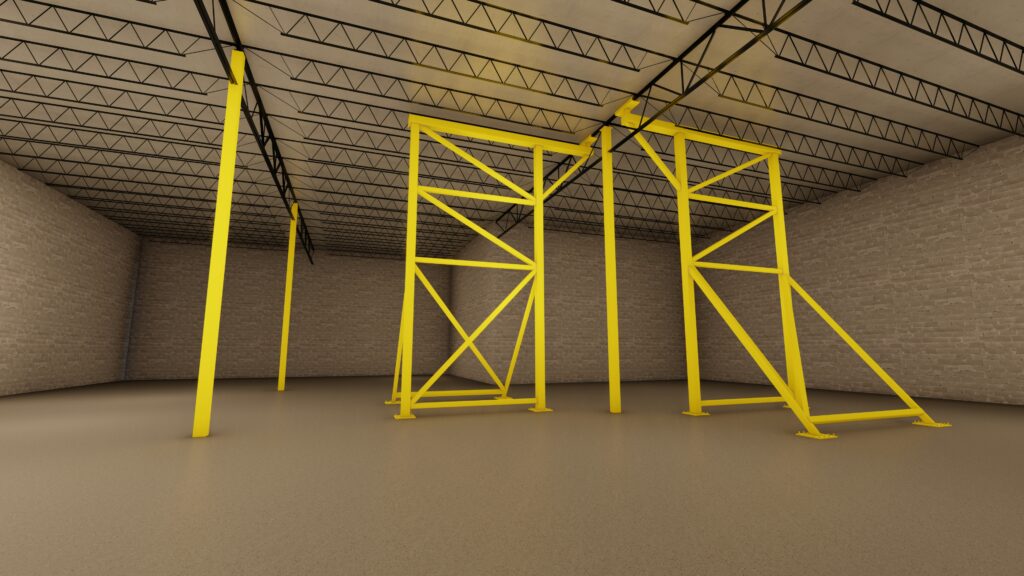 The project scope includes engineering services associated with the temporary support of the building structure during removal and replacement of an existing damaged steel column. The existing column, identified as an HSS 7×7 member, exhibited deformation and was determined to be unsuitable for continued service in a commercial structure with an approximate 32-foot clear height. Preeminent Solutions, Inc. was retained to design a safe and code-compliant temporary shoring system to maintain structural stability throughout construction, as well as to provide the design of the replacement column system.
