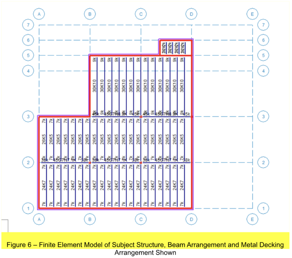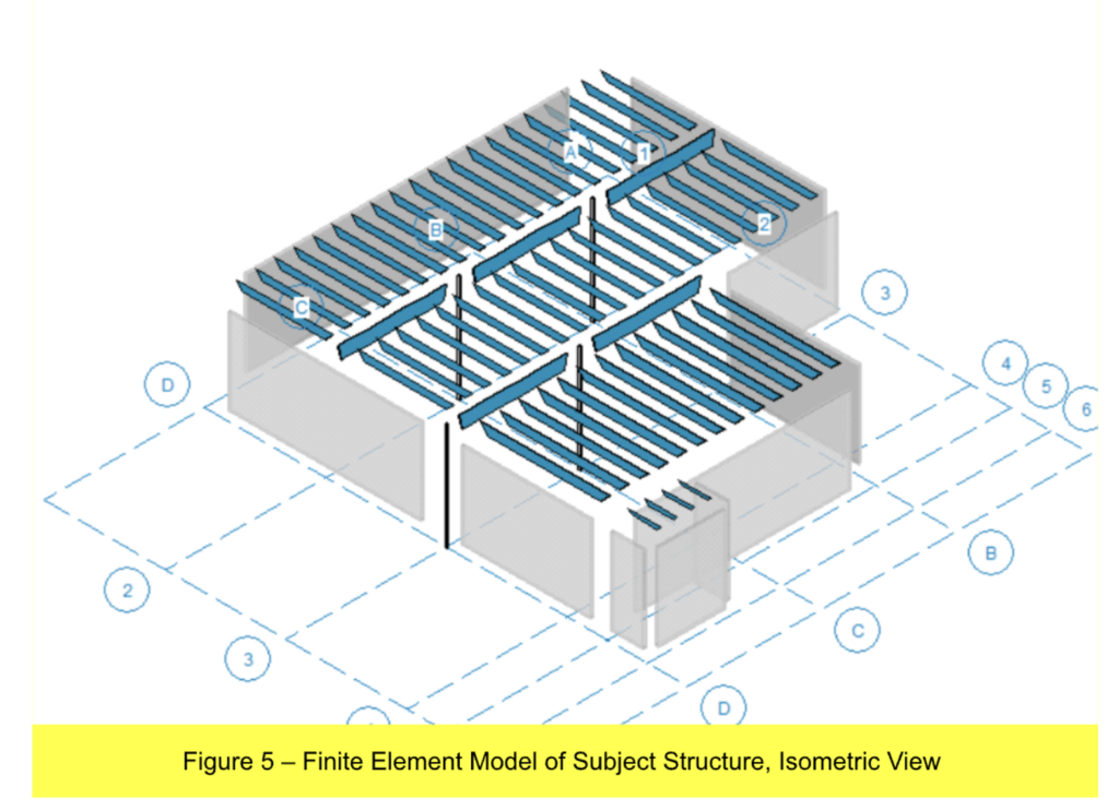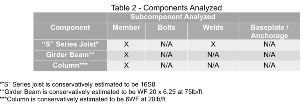 Finite Element Analysis (FEA) was used to evaluate columns and girder beams. Finite Element Analysis is a computational method used to analyze how a physical structure or system behaves under different loads in accordance with the laws of physics. Finite Element Analysis is commonly used in the analysis of complex structures including buildings and structural components under indeterminate loads. FEA analysis was also used to determine reaction loads for joists.