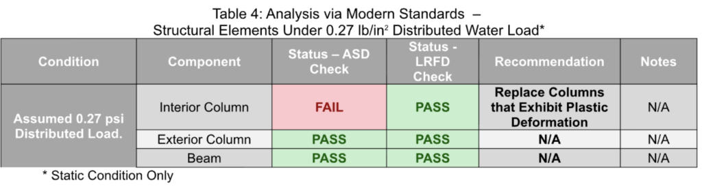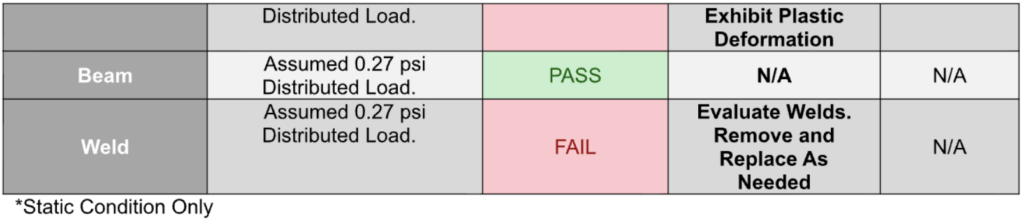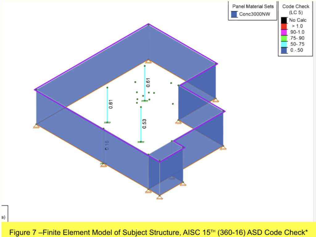 Note: FEA analysis and the site inspection were performed by the inspecting engineer. The inspecting engineer has over 10 years’ experience in FEA analysis of structures ranging from nuclear powerplants to aeronautical structures owned and operated by NASA.