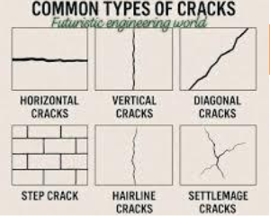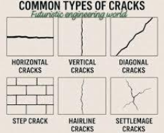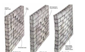 Horizontal Cracks, Vertical Cracks, Stepwise Cracking, and hairline cracks all indicate structural deterioration, with severe (i.e. wide) cracking indicating structural overburdening.